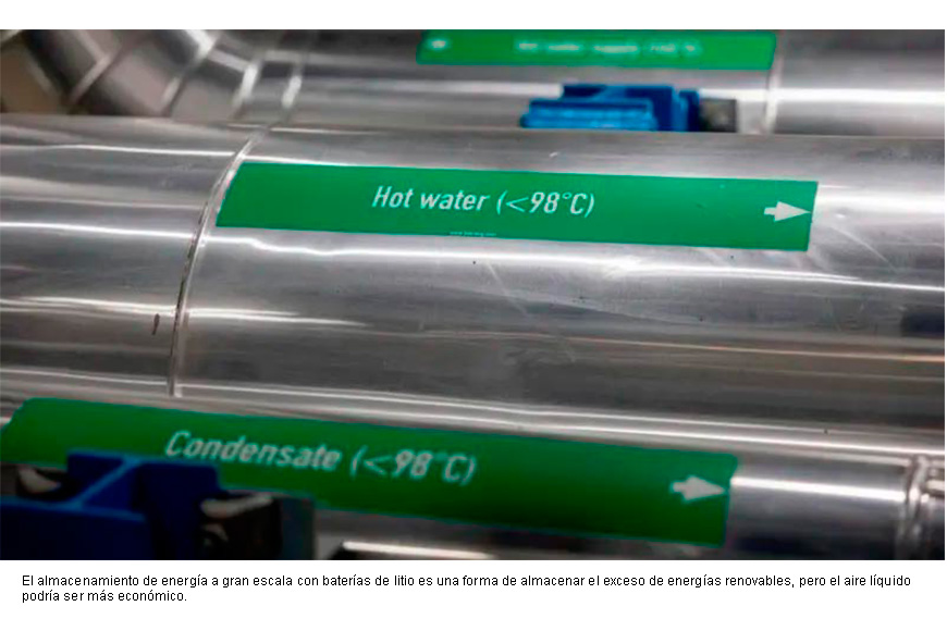 En el caso del aire líquido, este costo puede ser tan bajo como US$45 por megavatio-hora, en comparación con los US$120 del almacenamiento hidroeléctrico por bombeo y los US$175 dólares de las baterías de iones de litio.