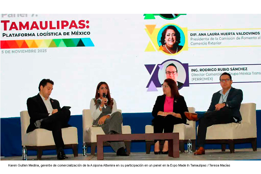 Karen Guillén Medina, gerente de comercialización de la Administración del Sistema Portuario Nacional de Altamira (Asipona), destacó la importancia de este cambio durante su participación en el panel “Tamaulipas, plataforma logística de México” en la Expo Made In Tamaulipas.