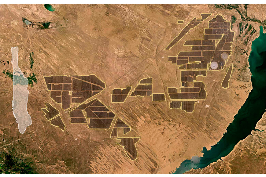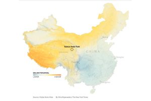 El principal grupo de granjas solares, conocido como Parque Solar Talatan, supera con creces a cualquier otro grupo de parques solares en el mundo. Ocupa 420 kilómetros cuadrados en el condado de Gonghe, un desierto alpino.
