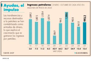 Encuentre la nota en: https://www.eleconomista.com.mx/economia/apoyos-pemex-salvan-ingresos-petroleros-crecieron-15-4-anual-20251130-788966.html