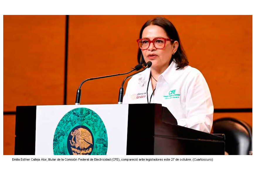 En su comparecencia ante la Comisión de Energía de la Cámara de Diputados con motivo del 1er Informe de la Presidenta de México, Claudia Sheinbaum Pardo, la Directora General de la Comisión Federal de Electricidad (CFE), Emilia Esther Calleja Alor, destacó el trabajo del Poder Legislativo para aprobar la modificación de los artículos 25, 27 y 28 de la Constitución y las leyes para revertir las reformas de 2013 y recuperar a Pemex y CFE como empresas públicas del Estado.
