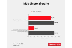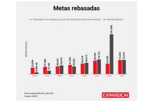 Esto ha dejado recursos nada despreciables para el erario público, pues la recaudación secundaria por actos de fiscalización de comercio exterior quedó por arriba de su meta para el cierre de septiembre. De tener una meta de 63,941 millones de pesos, se recaudaron 73,325 millones, es decir, un excedente por más de 9,000 millones, lo que representa un cumplimiento de 114.7%.
