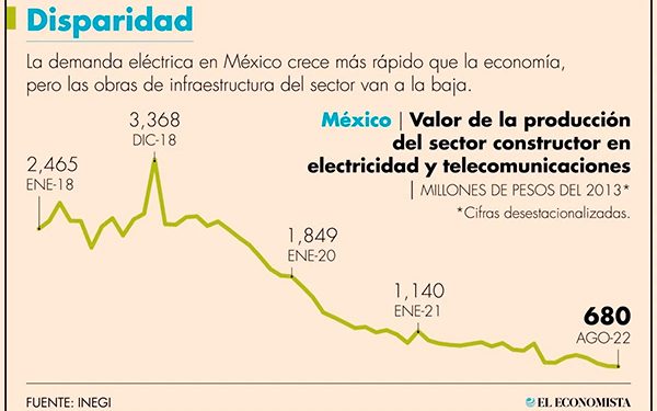 Para la fuente consultada, la caída en el Producto Interno Bruto del primer año del sexenio y durante la pandemia relajaron la demanda de energía y, de alguna manera, quitaron presión a la infraestructura eléctrica, pero debe acelerarse la construcción de nuevos proyectos para evitar cuellos de botella.