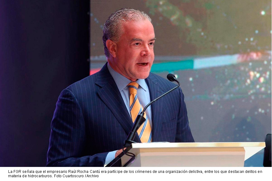 Ciudad de México. Petróleos Mexicanos (Pemex) señaló en su denuncia contra el grupo delictivo en el que la Fiscalía General de la República (FGR) indica que participaba el empresario Raúl Rocha Cantú que “se advierte que existe una estructura debidamente organizada para cometer de manera permanente y reiterada delitos, entre otros, en materia de hidrocarburos, lo que les permite tener una red de complicidades con otras organizaciones delictivas, incluso con servidores públicos en distintos niveles, así como con diversas dependencias, en las que no se descarta la participación de trabajadores” de la petrolera mexicana, señalan documentos del Poder Judicial de la Federación (PJF).