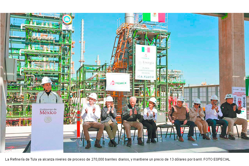 El director general de Pemex, Víctor Rodríguez Padilla, precisó que la refinería de Tula ya alcanza niveles de proceso de 270,000 barriles diarios, luego de que en 2019 detuviera totalmente su producción. Añadió que el costo de procesamiento es de 13 dólares por barril y destacó que México pasó de importar a exportar diésel.