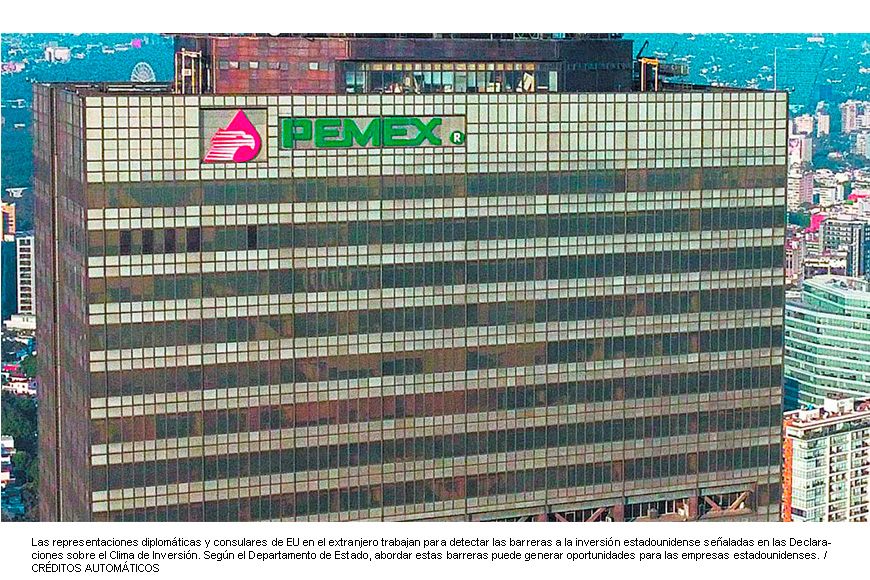 El trato más favorable otorgado por el gobierno de México a Pemex y a la CFE pone en desventaja a empresas de Estados Unidos, afirmó el Departamento de Estado (DOS) en su informe “Declaración sobre el clima de inversión en México 2025”.