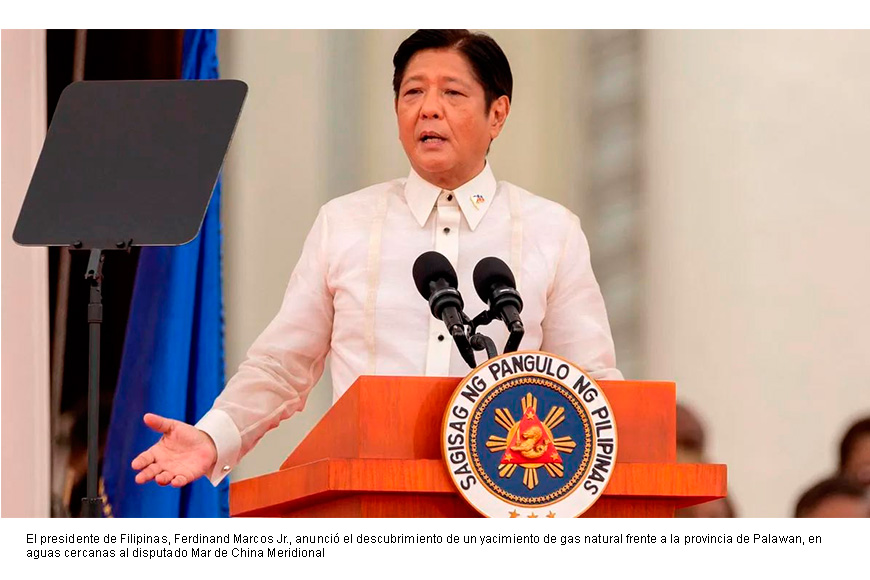 Un nuevo acontecimiento reaviva tensiones en el sudeste asiático, ya que el presidente de Filipinas, Ferdinand Marcos Jr., anunció el descubrimiento de un yacimiento de gas natural frente a la provincia de Palawan, en aguas cercanas al disputado Mar de China Meridional. El hallazgo, calificado por el mandatario como “significativo”, podría convertirse en un factor clave para evitar una crisis energética en el país.