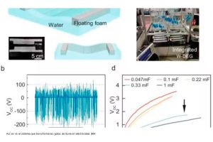 El agua cumple dos funciones esenciales en este sistema: actúa como soporte mecánico que mantiene la estabilidad del dispositivo y funciona como electrodo inferior del circuito eléctrico. Los iones presentes en el líquido transportan las cargas generadas, lo que optimiza el rendimiento y asegura una conversión energética estable y continua.