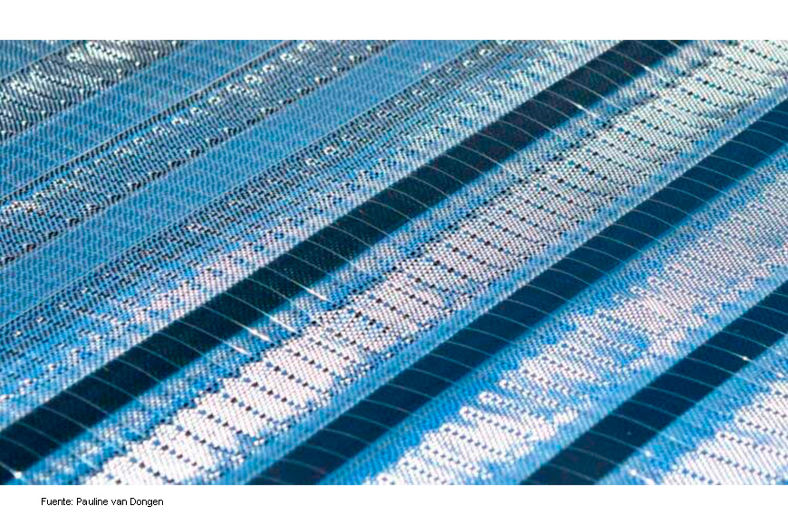 Por eso, una diseñadora de Holanda ha dado un paso más: ha transformado textiles en generadores solares para edificios con hasta 53 W por metro cuadrado.