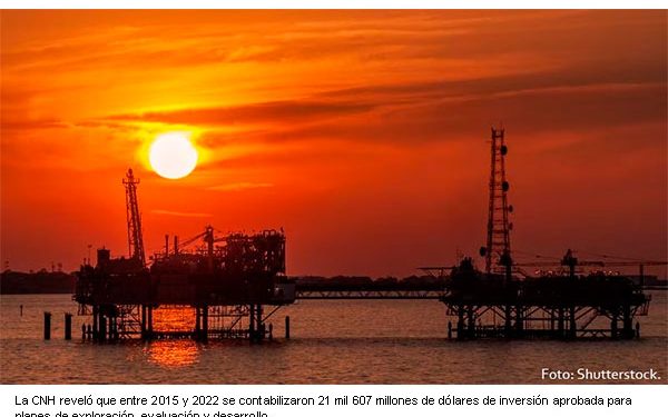 Por otra parte, la CNH también reveló que entre 2015 y 2022 se contabilizaron 21 mil 607 millones de dólares de inversión aprobada para planes de exploración, evaluación y desarrollo.