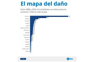 De los accidentes que dañaron partes del suelo mexicano, 323 ocurrieron en Veracruz, lo que representa el 30.9 por ciento. El segundo estado con mayor incidencia fue Tamaulipas con 139 eventos. En algunos estados, son menos. Por ejemplo, Aguascalientes solo tuvo uno, y Colima y Tlaxcala, cuatro cada uno.