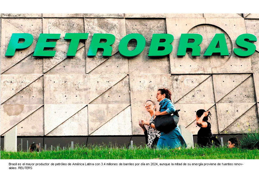 Brasil es el mayor productor de petróleo de América Latina con 3.4 millones de barriles por día en 2024, aunque la mitad de su energía proviene de fuentes renovables.