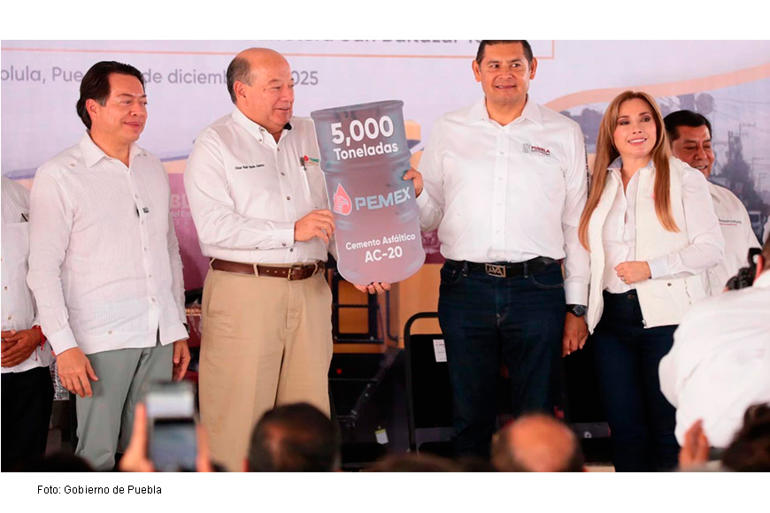 Al inaugurar siete vialidades rehabilitadas con módulos de pavimentación e insumos de la paraestatal, César Ojeda Zubieta, informó que, por instrucciones de la presidenta de México, Claudia Sheinbaum, la entidad contará con 5 mil toneladas más de asfalto en beneficio de Puebla, con ello se refrenda el compromiso con el Estado de Puebla, el cual se ve reflejado con las acciones de obra pública que emprende el gobernador Alejandro Armenta.