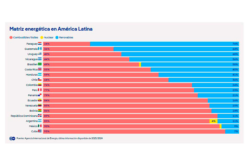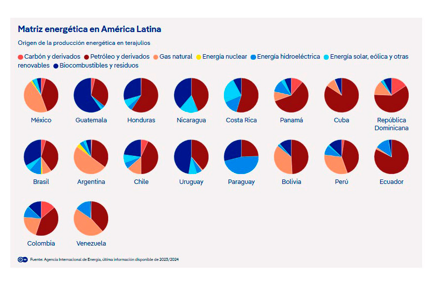 «La matriz energética de la región es de las más verdes del mundo por la hidroelectricidad. Esto no es nuevo, desde hace mucho tiempo es la zona con más energía renovable tradicional, y también una de las regiones con mayor penetración de energía renovable solar y eólica», explica a DW Francisco Monaldi, economista venezolano y Director del Programa de Energía para América Latina en el Baker Institute de la Universidad Rice.