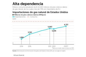 En este sentido, el director de Pemex, Víctor Rodríguez Padilla, aceptó el año pasado ante el Senado que México afronta una emergencia de seguridad nacional por su alta dependencia de las importaciones de gas natural estadounidense.