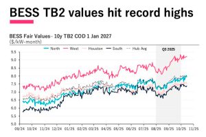 Al mismo tiempo, las ofertas de peaje de BESS (los precios a los que los promotores están dispuestos a vender el potencial de ingresos de sus activos) se mantuvieron prácticamente estables o disminuyeron. Esta convergencia (el aumento del valor combinado con precios de oferta competitivos y estables) apunta a una oportunidad potencialmente creciente en las operaciones de BESS.